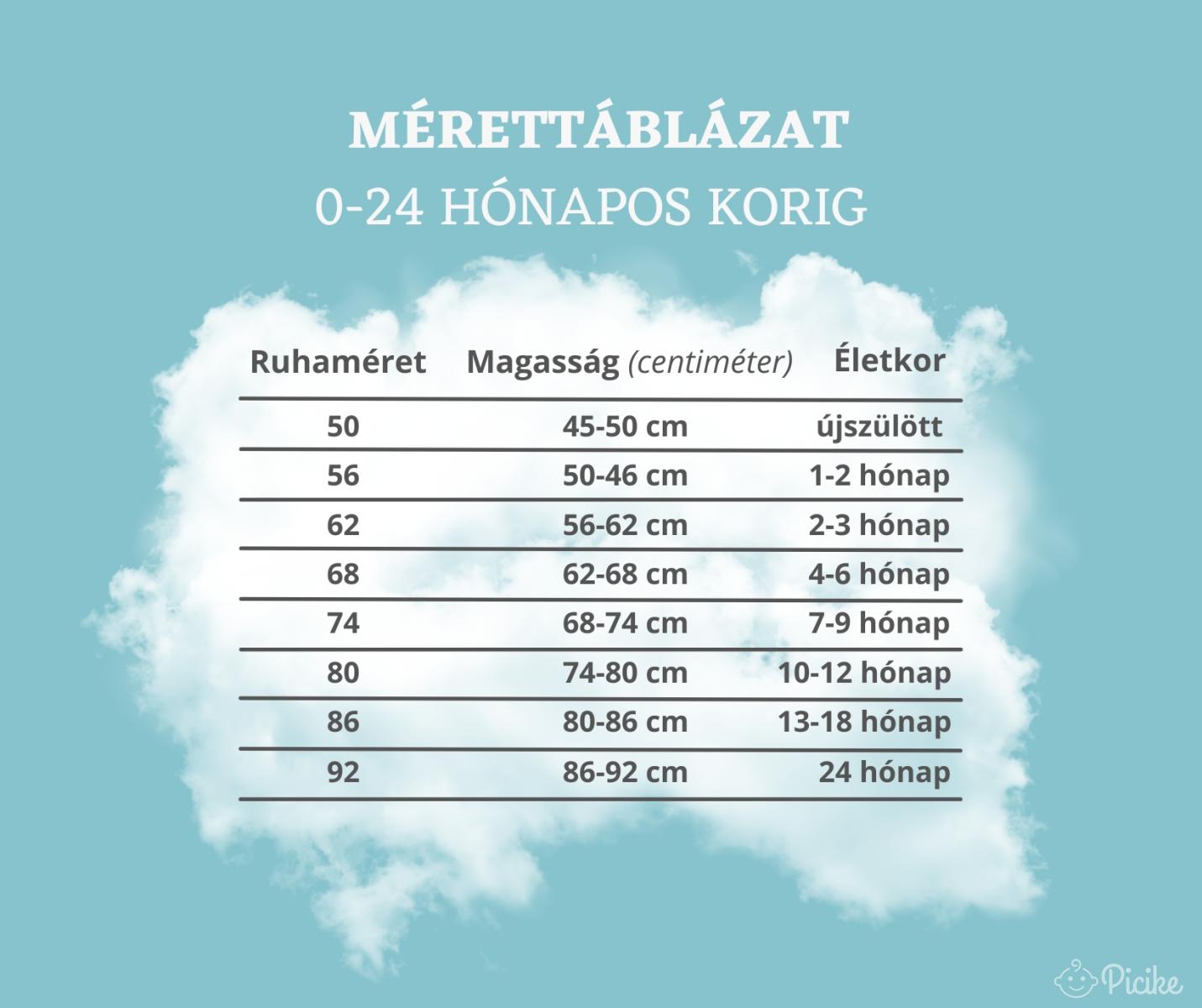 Az életkor szerinti méretezés általában hónapokban van megadva, például "0-3 hónap" vagy "6-9 hónap". Fontos szem előtt tartani, hogy ezek csak hozzávetőleges méretek, mivel minden baba egyedi tempóban növekszik.