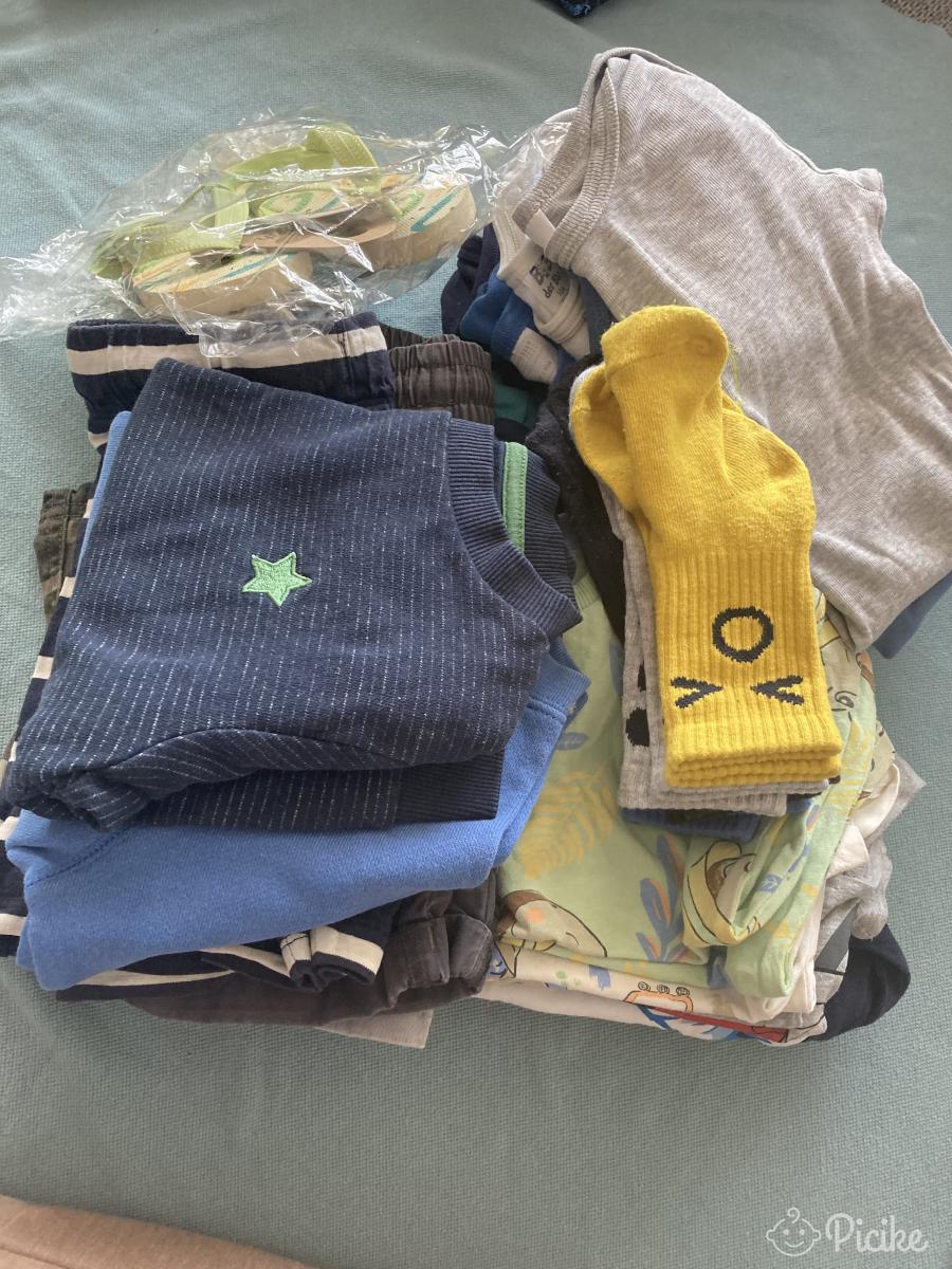 Kisfiú használt babaruha csomag - egy hosszúnadrág, kettő pulcsi, pólók és body-k, egy strandpapucs, trikók, rövidnacik. Minden darab külön is fotózva, igény esetén küldöm a képeket. A hirdetésben egyben látható a csomag. Sajnos nem fért fel minden kép. 21 ruha+zoknik+papucs!