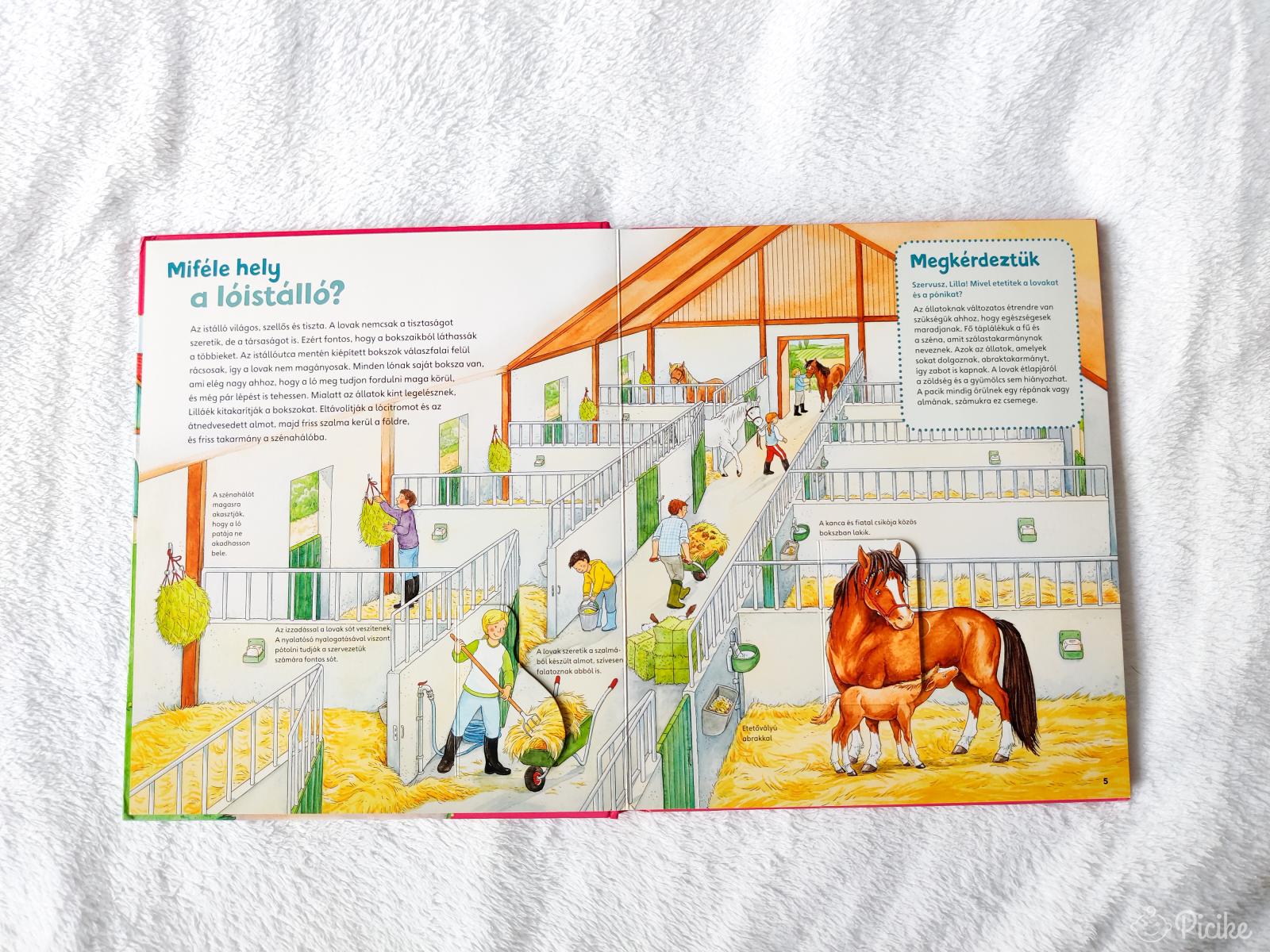 5-7 éveseknek, de a kislányom már 2 éves kora óta rendszeresen lapozgatta. Nagy kedvenc lehet lóimádó kicsiknek.