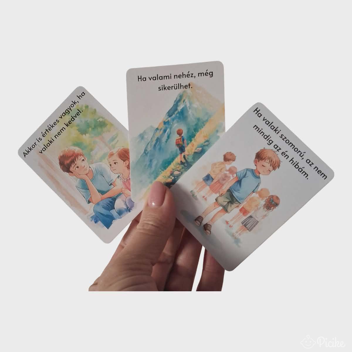 Az „Elég vagy!” kártyacsomag kifejezetten 6–10 éves gyermekek számára készült, hogy játékos, vizuális és egyszerű nyelvezetű eszközön keresztül támogassa az önbizalom és az érzelmi intelligencia fejlődését.