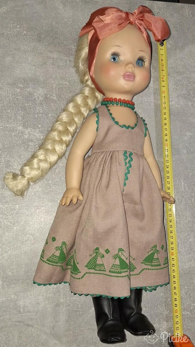 Régóta vigyázva őrizgetett "szovjet" baba.Ha minden igaz anno sírt,már nem.......A képen láthatóan nagyon -nagyon jó állapotú.Kb 53cm.Arca és karjai puha gumi,többi része műanyag vagy merevebb gumi,nem tudom eldönteni.